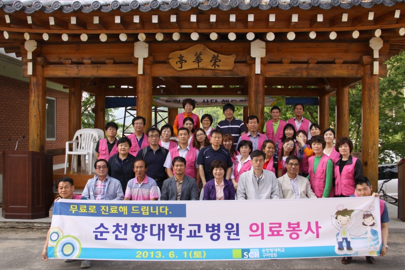 각종 질병에 시달리면서도 병원 접근성이 어려워 병을 키워왔던 농촌 어르신들의 건강을 돌본 이동식 종합병원이 전북 진안에서 운영되어 큰 호응을 얻었다. 순천향대학교 구미병원(병원장 박래경)은 6월 1일 농촌진흥청, 진안군, 전북 농업기술원과 공동으로 진안군 안천면 노채마을에서 질병 진단 및 치료를 돕는 새로운 개념의 찾아가는 이동식 종합병원을 마련했다. 이 행사는 전문가가 자신의 재능을 사회봉사에 활용, 더불어 사는 사회의 아름다운 모습을 보여주는 표본으로 영농전문가와 의료진이 참가하는 농촌 맞춤형 봉사활동이다. 이날 순천향대학교 구미병원은 외과 전문의인 박래경 병원장도 직접 참여해 어르신들의 건강을 살폈다. 각 질환별 전문의와 간호사, 약사 등으로 구성된 30여명의 의료지원팀은 호흡기 질환, 근골격계 질환, 척추질환 등의 진료와 혈액ㆍ소변검사, 흉부 X-ray, 초음파, 골밀도 검사 후 의약품 제공과 더불어 농업인 건강예방 교육도 실시했다. 병원에서 의료지원이 이뤄지는 동안 영농기술 전문가들은 고추, 인삼 등 주요 작목에 대한 기술 컨설팅과 고추 지주 세우기 등 일손 돕기를 했으며 노화 되거나 고장난 농기계를 점검하고 수리했다. 진료를 받은 어르신들은 "몸이 불편해도 도시까지 진료를 받으러 나가기 어려웠는데 이렇게 먼 곳까지 와 진료를 해줘서 너무 고맙다"고 말했다. 박래경 구미 순천향대학교병원장은 "농업인의 건강증진과 농촌 발전을 위해 최선을 다해 돕겠다"고 말했다. 이 사업은 2010년 농촌진흥청과 순천향대학교가 농촌 발전을 위해 손을 잡은 것과 관련, 순천향대학교 산하 부속병원은 해마다 의료 혜택으로부터 소외된 농어촌 지역을 방문해 의료봉사 활동을 펼치고 있다.