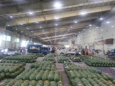 농산물도매시장(소장 김만호)은 최근 전력수요가 급증 하고 원전이 가동 중지 되는 등 전국 전력난이 예상되는 가운데 에너지 절약을 위해 다방면으로 힘을 쓰고 있다. 에너지를 절약하고 이산화탄소 배출량을 줄이기 위해 생활 행태 개선의 일환으로 시행되는 오후2시~5시전력피크시간대 전기사용 자제, 실내온도 28도 이상유지, 불필요한 조명 소등, 복장 간소화 등을 철저히 시행하고 있다. 또한, 정부의 저탄소녹색성장 정책의 하나로 추진되는 고효율 LED조명 교체사업은 청과동, 채소동, 사무실, 지하주차장등 전체 38.7%의 교체 비율을 나타내 연간 전기사용량의 약 8.4% 절감효과를 나타내고 있으며, 올해 관리사무소 옥상에 설치한 태양광발전설비(30KW)는 연간 39,420KWh를 생산할 것으로 보여 연간 전기사용량의 약 2.7% 절감효과를 거둘 것이다. 이는 소나무 20년생을 축구장 20개 크기인 14ha를 심어 숲을 조성한 효과와 동시에 연간 약 1,600만원의 전기요금을 절약 할 것으로 보여진다. 이외에도 농산물도매시장 내 보안등 격등제어, 화장실 및 지하주차장 자동센서점멸기 설치 등으로 에너지절약을 전개하고 있다. 농산물도매시장관리사무소는 에너지절약의 중요성을 인식하고 민간부분 참여 유도를 위해 농협공판장 및 중앙청과 중도매인들에게도 에너지절약에 적극 동참하기를 권장하여 에너지절약 시책추진에 앞장 서고 있다.