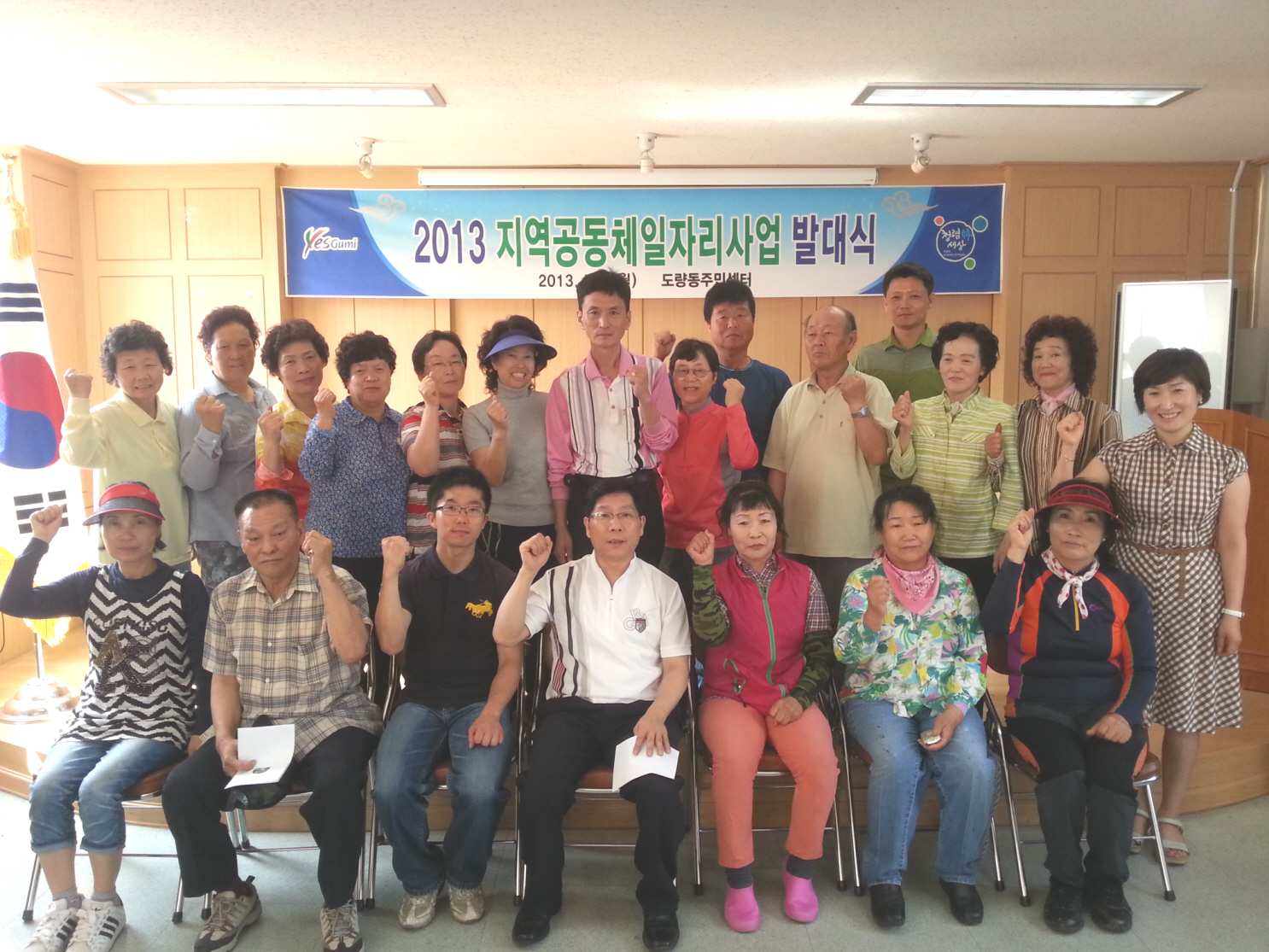 도량동(동장 이대창)은 7월 1일 주민센터 2층 회의실에서 지역공동체일자리사업 참여자 20명이 참석한 가운데 '2013년 하반기 지역공동체일자리사업 발대식'을 개최했다. 2013. 7. 1~11. 30까지 5개월간, 2개 사업으로 시행되는 이번 일자리 사업은 상반기에 시행하여 주민들의 큰 호응을 얻고 있는 친환경 재활용 비누만들기, 희망농장 운영(고구마 경작), 마을꽃길 조성사업을 지속적으로 추진할 계획이며 특히 하반기에 본격적으로 시행하게 되는 수질오염원의 하나인 쌀뜨물을 이용한 EM발효액 생산으로 친환경 녹색 도시 조성에 적극 앞장설 계획이다. 이대창 도량동장은 "혹서기 폭염 등을 대비한 개인건강 및 안전관리에 유의하고 특히 친환경 비누만들기와 EM발효액 생산 사업을 성공적으로 추진해 부녀회를 비롯 단체들뿐만 아니라, 각 가정에서도 동참할 수 있도록 힘써줄 것을 당부하며, 행정적인 지원을 아끼지 않겠다"고 말했다. 한편, 도량동에서는 지역공동체일자리사업이 취약계층을 위한 한시적 재정지원 일자리사업에 머무르지 않고, 친환경 제품 생산을 통한 기술과 전문지식을 습득하여 지역의 그린 전도사로 육성할 계획이다.