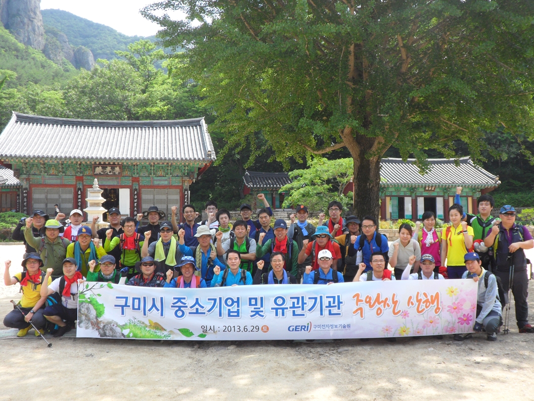 구미전자정보기술원(원장 안병화)은 구미지역 중소기업 및 유관기관 관계자 40여명과 함께 6월 29일 경상북도 청송군에 위치한 주왕산에서' 제5회 구미 GERI 등산회'를 개최했다. 이는 지역 산학연관 연계협력과 인(人)적 융합을 도모하기 위해 2012년 4월부터 개최 되어 격월로 짝수달에 개최되고 있으며, 이번 행사는 다섯번째로 주왕산에서 개최 되었다. 특히, 이번 산행의 코스는 단시간에 주왕산 정상을 정복한 후 장시간의 내리막 코스인 후리메기 삼거리를 거쳐 3폭포, 2폭포, 1폭포의 역순의 순탄한 코스로 구성 되었으며, 이는 창조경제 시대가 시작하는 시점에 힘겹고 어려운 길이지만 먼저 정상의 궤도에 올라서면 순탄한 길을 걸을 수 있다는 취지가 내포 되어 있었다. 안병화 구미전자정보기술원장은 "세계 경기 불황 및 엔저의 영향 등으로 구미 경제가 위기를 맞을 수 있다"며 "구미의 산학연관이 서로 이끌어 주어 창조경제 시대의 정상에 발 빠르게 올라서면 등산회 코스처럼 순탄한 미래를 맞을 것이다"라고 강조했다. 향후 등산회에 참가하고자 하는 기업인 또는 유관기관 관계자는 구미전자정보기술원 기업진흥팀(054-465-7992)로 연락하면 된다.
