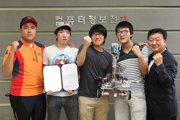 구미대학교(총장 정창주)는 제3회 전국 전문대학교 IT융합 전자회로 설계 및 제작 경진대회와 제1회 스마트 로봇 경진대회에서 우수한 성적으로 입상하는 쾌거를 거뒀다. 6월 28일 국제대학교에서 동시 개최된 이번 대회에서 구미대 컴퓨터정보전자과 로보테크 동아리 회원 4명으로 구성된 GPS팀(대표 서창민․2년)이 중량급 농구로봇 부분에서 금상을 차지했다. 같은 학과 3명의 학생들로 구성된 캐드천하팀(대표 김진규․2학년)은 IT융합 전자회로 설계 부분에 참가해 동상을 수상했다. 올해 처음으로 개최된 스마트 로봇 경진대회에는 총 51개 팀이 참가한 가운데 경량급 포켓볼로봇 부문과 중량급 농구로봇 부문으로 나눠 진행됐다. 이번 로봇 경진대회는 창의적이고 혁신적인 로봇제작으로 소프트웨어 개발 능력과 하드웨어 제작 능력 배양을 목적으로 개최됐다. 전국 전문대학 40개팀이 참가한 IT융합 전자회로 부분은 전자회로 CAD설계와 회로시뮬레이션 및 회로 완성하기, 마이크로프로세서 임베디드 설계 과정을 평가하는 방식이었다. 구미대 캐드천하팀은 미션수행 능력에서 높은 점수를 받아 동상을 받았다. 배장근 구미대 LINC사업 단장은 "최근 산업체는 우수한 공학 인재의 채용 조건으로 실무 적합형 인재를 요구하고 있는 추세"라며 "이번 대회를 통해 학생들이 엔지니어의 기본역량 강화와 팀워크를 배양하는 계기가 되었을 것"이라고 말했다. 이번 대회는 대한전자공학회 산업전자소사이어티(회장 남상엽, IEEK))에서 주최했으며 대회 중에 IE학술대회 및 산업전자기술교육세미나도 개최됐다.