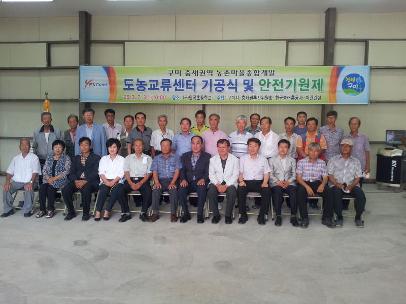 무을면(면장 류시건)에서는 7월 3일 임춘구 시의회의장, 김봉교 도의원, 이명희․강승수 시의원, 관내 기관단체장 및 주민 등 70여명이 참석한 가운데 '도농교류센터 기공식 및 안전기원제'를 개최했다. 이날 기공식은 내빈소개, 국민의례, 이상학 춤새권역위원장의 경과보고, 시루떡절단식 및 안전기원제, 다과회 순으로 진행됐다. 도농교류센터는 춤새권역 농촌마을 종합개발사업의 일환으로, 대지면적 9,438㎡, 건축면적 450㎡에 체험교실, 전시실, 정보화실을 비롯해 야외공연장 등 다양한 부대시설이 들어설 예정으로, 도시인들에게는 농촌을 체험하고 고향의 멋과 맛을 느낄수 있는 공간이 될 것이며, 지역 주민들에게는 농가 소득에 많은 도움이 될 것으로 전망된다. 류시건 무을면장은 축사를 통해 "도농교류센터 건립을 위해 노력하시는 모든 관계자들에게 감사드리며, 이번 기공식 및 안전기원제를 통해 안전사고 없이 도농교류센터가 잘 완공되어 무을면을 대표할 수 있는 랜드마크가 되기를 바란다"고 말했다. 도농교류센터는 2013년 12월경 준공예정이다. |