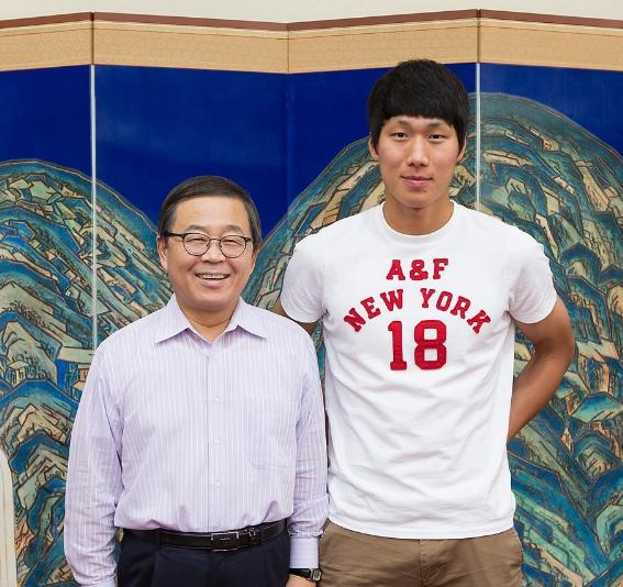 남유진 구미시장은 국제축구연맹이 주최한 FIFA U-20 월드컵에서 한국을 8강으로 견인한 지역 출신 송주훈 선수를 시장실로 초청, 격려했다. 송 선수는 비산초등학교에서 축구를 시작해 광명공업고등학교 졸업, 현재 건국대학교 1학년 재학중이며, 슛팅 감각이 뛰어나고 시야가 넓은 중앙수비수로 한국축구팬들의 이목을 한몸에 받고 있다. |
