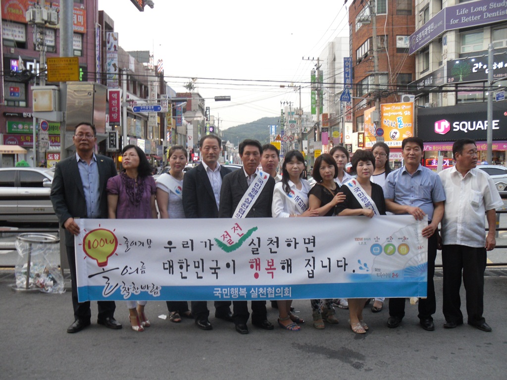 국민행복실천협의회(이하 국실협)는 7월 12일 구미에서 전국 순회 절전 캠페인을 실시했다. 이날 행사는 국실협(공동대표 이판돌)이 박근혜정부의 여름철 전력난과 블랙아웃을 대비해 전국적으로 실시하고 있으며 경기, 서울, 인천, 부평에 이어 구미역광장에서 실시됐다. 국실협 회원 20여명이 참석하여 우리가 절전을 실천하면 대한민국이 행복해집니다 라는 주제와 인당 100w 줄이기 캠페인 전단지로 배포를 통한 길거리 홍보를 하며 중앙시장일대 상가를 방문하여 갑작스런 정전에 대한 시민들의 자발적 참여를 유도 했다. 이날 참석한 신용표 상임대표와 이판돌 공동대표, 김은태 경북대표 등은 전국적인 자발적 절전 캠페인이 될수 있도록 협조 하기로 했다. 국실협은(사)지체장애인 구미시지회와 업무협약을 맺고 3월부터 매달 장애인가정에 도배, 전기공사, 환경정화등을 하고 있으며 7월16일은 장천면 종합복지회관에서 거동이 불편한 주민에게 미용·이발봉사를 실시한다.