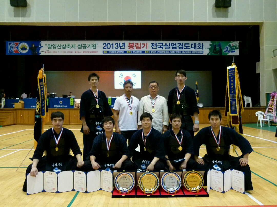 구미시청 검도팀(감독 이신근)이 전국에서 최고의 자리에 우뚝 섰다. 2013년 7월17일~20일까지 4일간 경남 함양군 고운체육관에서 열린 ‘2013 봉림기 전국실업검도대회’에서 단체전, 개인전을 모두 석권해 구미시의 위상을 드높였다. 이는 지난달 개최된 전국실업검도대회 우승에 연이은 성과로 구미시청 검도팀이 전국 최강자의 자리를 확고히 굳혔다. 전국 실업팀 선수들이 대거 참여해 뜨거운 열전을 펼친 이번 대회에서 구미시는 단체전 우승, 개인전 부문에서 이강호 선수가 6단부 1위, 정현교 선수가 3단부 2위 및 통합 개인전 2위의 성과를 올렸다. 또, 이신근 감독은 최우수지도자상을 수상해 선수, 감독, 단체까지 모두 입상 하는 최고의 영광을 안았다. 이강호 선수는 현재 국가대표 주장으로 지난 2006년 시청 소속으로 입단한 이래 우수한 성적을 거양하며, 구미시의 명예를 드높였다. 또, 지난 6월에 열린 전국실업검도대회에서도 우승을 차지한 정현교 선수는 3단부 준우승은 물론, 개인전 16강 선수들로 치른 통합개인전에서도 준우승을 차지했다. 이신근 감독은 현재 대한검도회 법제상벌위원회 위원 및 선수위원회 위원과 경북검도회 수석부회장 및 한국실업검도연맹 부회장으로 검도계에서 지도자로서의 확고한 위치를 굳히고 있다. 8명의 선수들 또한, 지도력 있는 감독의 지휘 아래 명실상부한 전국 최강팀으로 대한민국을 넘어 세계 최강팀이 되기 위해 최선의 노력을 다 하고 있다. |