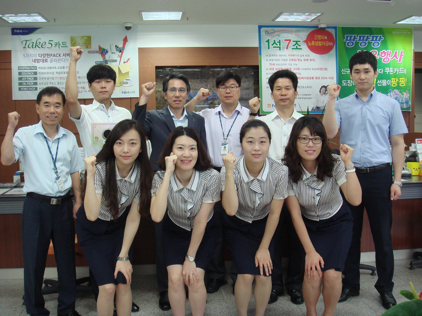 농협은행 구미 강동지점(지점장 양희우)이 2013년 7월 23일 '2013년도 상반기 업적평가' 에서 최우수상을 수상했다. 이번 수상은 올해 상반기 농협은행의 모든 사업을 총괄평가해 시상하는 상으로 2012년도 총화상 수상에 이어 경사가 겹쳤다. 강동지점은 양희우 지점장을 비롯한 전 직원들이 일치단결해 농협금융 환경변화를 선도하고, 직원간의 인화단결로 고객과 지역에 봉사하는 지역은행으로 칭찬이 자자하다. 특히, 지역 밀착화를 위해 지점내 365코너 여유공간을 활용해 구미 지역 농·특산물 홍보사진과 구미지역 관광명소 홍보사진을 게시해 지역민과 이용고객들로부터 좋은 반응을 얻고 있다. |