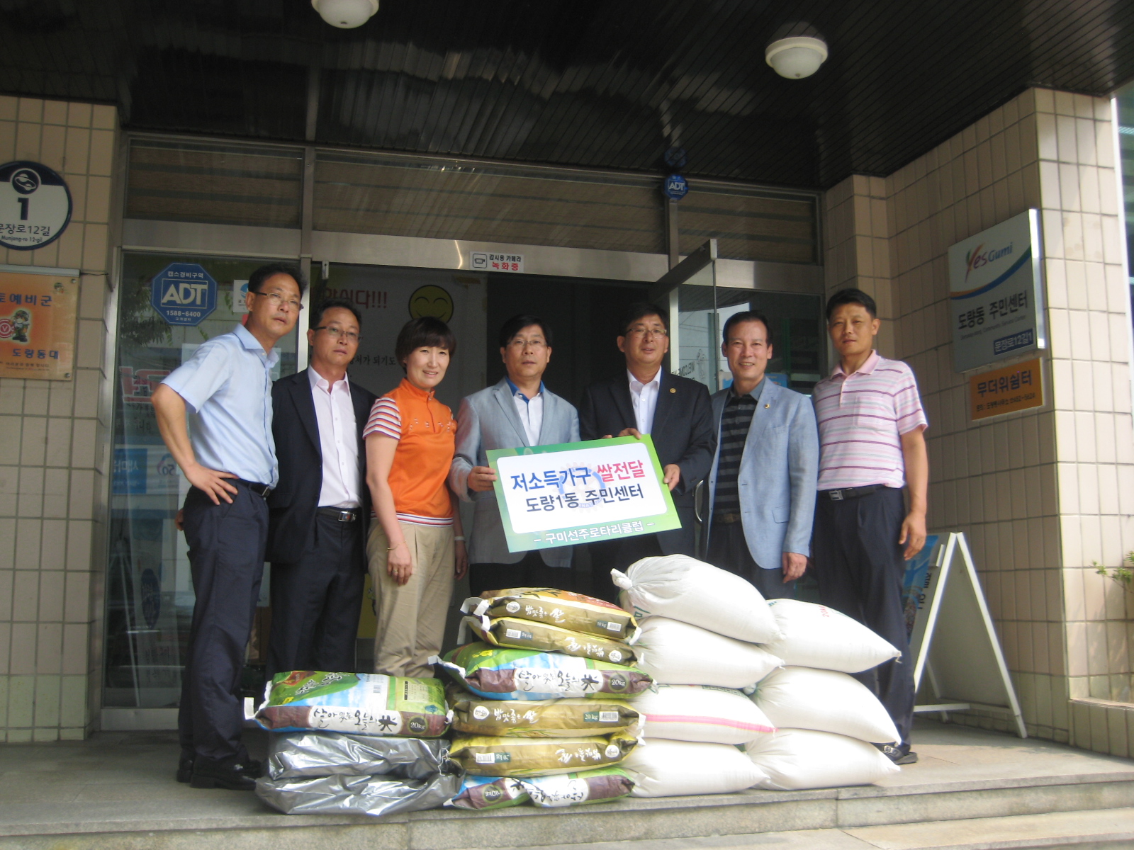 도량동(동장 이대창)은 구미선주로타리클럽(회장 최성열) 회원 5여명이 7월 26일 도량동사무소를 방문해 쌀 20KG 15포를 기탁, 이웃사랑 실천에 앞장서 지역사회에 훈훈한 미담이 되고 있다. 구미선주로타리 클럽은 2002년 10월 창립, 회원 63여명으로 구성되어 해마다 저소득학생에게 장학금 및 급식비를 지원하고 있으며, 저소득 가구에는 쌀, 연탄, 김치를 지원, 매달 구미장애인복지관 점심식사 조리 및 배식봉사에 참여하는 등 다양한 봉사 활동을 펼치고 있다. 최성열 선주로타리클럽회장은 "기탁한 쌀이 어려운 이웃들에게 작은 보탬이 되기를 바라고 성품은 저소득 가구 15세대에 골고루 배부될 예정이다"고 말했다. 이대창 도량동장은 "이웃 사랑을 몸소 보여준 구미선주로타리클럽에 감사하며 기탁된 쌀이 어려운 이웃에게 큰 힘이 될것이며, 앞으로도 지속적인 관심과 참여"를 당부했다. |