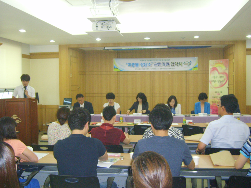 구미보건소(소장 구건회)는 7월 26일 구미보건소 3층 열린마당에서 종사자 50명을 대상으로 지역사회 자살예방 및 정신건강증진을 위한 '마중물 상담소 협약식및 교육'을 실시했다. 마중물 상담소는 지역주민들이 정신보건서비스를 보다 쉽게 이용할 수 있도록 지역 복지기관들이 자체적으로 자살위기 및 정신건강 중재가 필요한 고위험군을 선별하고 정신건강 상담서비스를 제공할 수 있도록 하기 위해 추진 되었다. 1부 협약식은 구미시정신건강증진센터 주최로 금오종합사회복지관, 구미종합사회복지관, 구미시장애인종합복지관, 경상북도청소년남자쉼터, 구미대학교(학생생활상담소)가 참여, 마중물상담소 운영뿐만 아니라 효율적인 지역사회정신건강증진 사업운영에 대해 협약을 체결했다. 협약식에 이어 협약기관 상담업무 종사자들을 대상으로 실무자들의 정신건강에 대한 이해와 중재능력을 향상하고자 자살예방중재기술교육 보고 듣고 말하기, 자살 및 정신건강 고위험군 선별 및 상담방법에 대한 교육을 실시했다. 구미시 정신건강증진센터는 다양한 분야의 복지기관, 학교, 병원 등을 대상으로 마중물 상담소기관 협약을 체결해 실무자들을 대상으로 자살 및 정신건강 예방교육 상담중재기술 교육과 지역사회 복지기관과 위험군 분류에 따라 적절한 개입을 해 나갈 수 있는 시스템을 구축함으로써, 구미시민들이 보다 쉽고 편안하게 다양한 형태의 정신건강 서비스를 이용할 수 있도록 할 방침이다. 정신건강 및 자살예방 상담이 필요한 분은 구미시정신건강증진센터(480-4047)에 문의하거나 마중물기관으로 방문하면 도움을 받을 수 있다. 또한, 마중물 상담소 운영에 관심이 있는 기관은 구미시정신건강증진센터 자살예방팀(480-4047)을 통해 신청 접수를 할 수 있다.