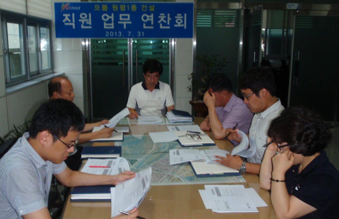 원평1동(동장 김우춘)은 7월 31일 주민센터 회의실에서 전 직원이 참여해 업무 담당자별 주요업무추진, 2013년 특수시책 추진 및 청렴한 공직자상 정립을 위한 직원 업무연찬회를 개최했다. 이번 연찬회는 주민이 행복한 으뜸 원평1동을 건설하는데 열띤 토론의 시간으로 청렴한 생활공직자로서의 올바른 자세를 확립하고 청렴실천에 대한 결의를 다지는 시간으로 진행 되었다. 2013년 하반기 발굴한 특수시책으로 금오시장 식당 이용, 밀착형 체납세 독려, 통장 직무향상을 통한 참여시정 추진, 생동감 있는 동·행정 종합일지 작성, 음악이 흐르는 민원실, 깨끗한 경로당 조성, 맞춤형 방역 및 1일 체험, 불법광고물 정비의 날 운영, 장기 주차금지 안내문 부착, 4C운동 등이다. 전 직원이 업무연찬을 통해 '으뜸 원평1동 만들기' 동정 목표를 새롭게 다지면서 질 높은 행정서비스를 제공하고자 서로의 업무를 공유하였으며, 아울러 직원 화합도모를 실천하는 계기를 마련했다. 김우춘 원평1동장은 "바쁜 와중에도 각자의 소관분야의 주요업무와 특수시책을 준비하고 토론하며 지역주민에게 한발 더 가까이 다가가는 적극적인 동·행정을 몸소 실천하는 직원들에게 감사하고 서로 한마음 한뜻으로 업무를 추진해 나가자"고 말했다. |