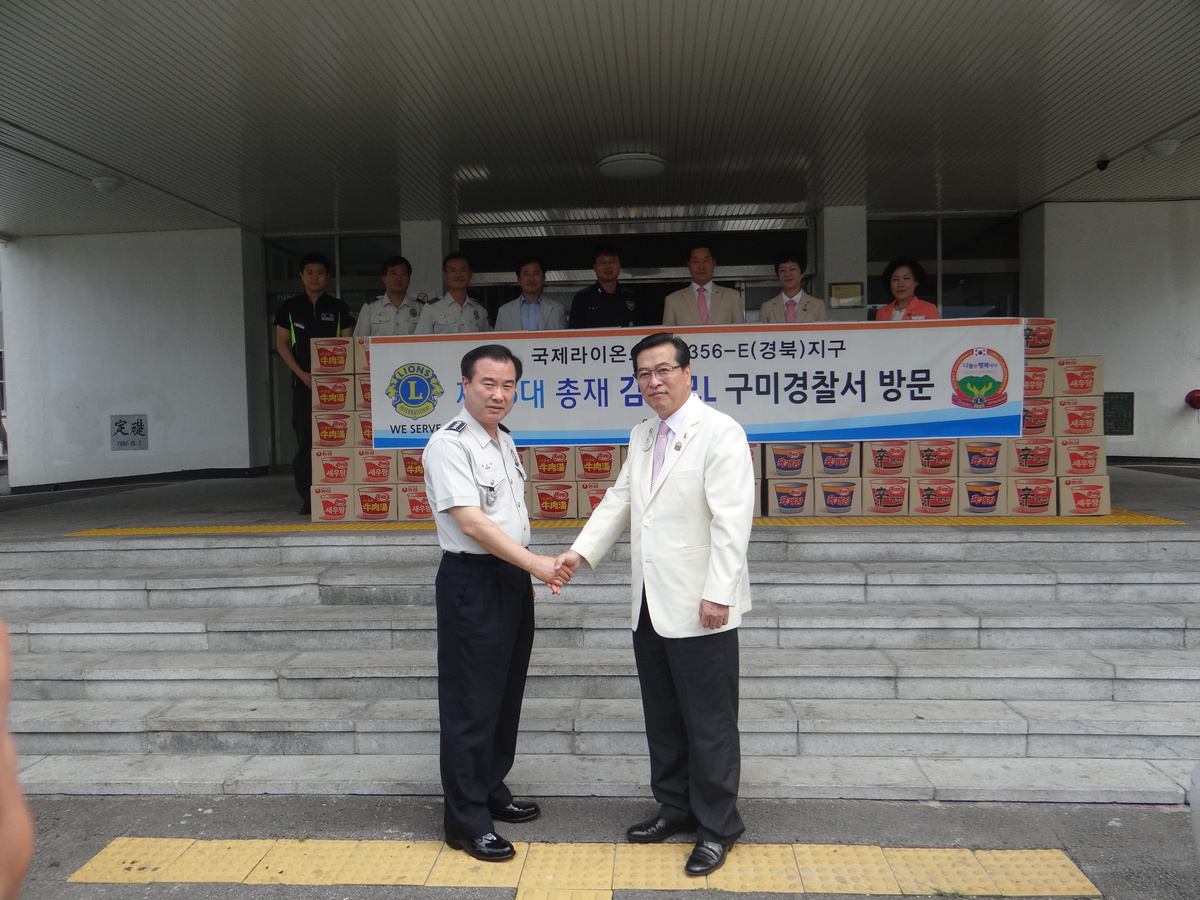 김경모 356 E(경북)지구 라이온스클럽 총재는 8월 5일 구미경찰서 방범 순찰대를 방문, 컵라면 85박스 위문품을 전달했다. |