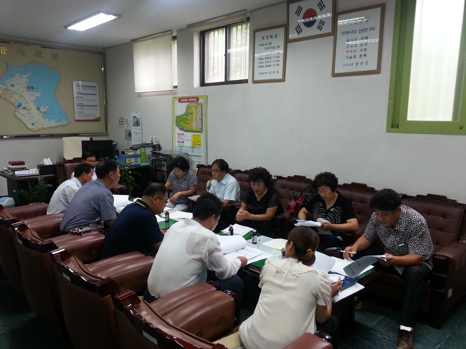 상모사곡동(동장 곽인태)은 8월 5일 동장실에서 김상조 시의원을 비롯해 7개 단체장들이 참석한 가운데 '단체장 회의'를 개최했다. 이날 회의는 지역 여론 수렴은 물론 단체간 소통의 자리로 마련 되었으며, 2013 구미 낙동강 용선대회 참가자 선수선발 등 시 현안 사항 공지 등으로 진행 되었다. 곽인태 동장은 동 발전과 화합을 위해 적극 협조해 주신데 대해 감사 인사를 전하고, “폭염에 따른 여름철 안전사고 예방을 위해 많은 관심을 가져 줄 것”을 당부했다. |