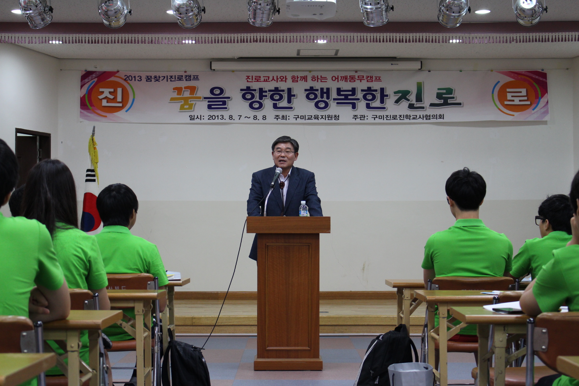 경상북도구미교육지원청(교육장 황태주)은 8월 7일부터 1박 2일 일정으로 관내 고등학교 1학년생을 대상으로 꿈찾기 진로캠프 꿈을 향한 행진을 경북청소년수련센터에서 개최했다. 이번 진로캠프는 보현산 천문대 전영범 대장의 특강과 대학 관계자 및 진로 진학 교사의 입학사정관제에 대한 강의 및 선배 대학생과 긍정적 마인드를 주고 받는 힐링의 성격을 가진 새로운 진로체험 형태로 진행 되었다. 역량과 창의력을 갖춘 21세기 인재육성이라는 주제 아래 개최된 이날 캠프는 관내 21개 고교를 대상으로 희망자 80명을 선발, 서울대를 비롯한 각 전공별 멘토를 조별로 매칭하는 새로운 형식의 진로프로그램을 선보였다. 황태주 교육장은 "2013 꿈찾기 진로캠프 운영이 변화하는 사회에서 합리적으로 진로를 선택하고 실현할 수 있도록 체험 중심의 진로교육 프로그램 제공을 통해 스스로 꿈과 희망을 실현하는 계기가 되기를 바란다"고 말했다.