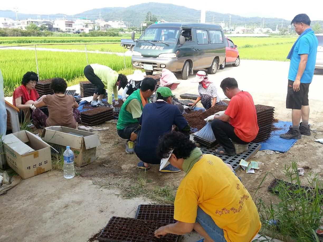 공동경작지 가을배추 모종을 파종