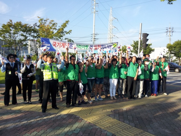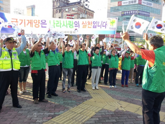구미시 새마을회(회장 김봉재)는 제68주년 광복절을 맞아 8월 15일 선산읍 낙남루 앞 1호 광장과 인동동 9호 광장에서 나라사랑 태극기 달기운동을 전개했다. 이날 행사는 매년 나라사랑의 마음을 되새기고, 선열들의 숭고한 독립정신을 계승ㆍ발전시켜 국민적 단결과 자긍심을 고취시킨다는 차원에서 실시해 오고 있다. 올해 행사는 읍ㆍ면ㆍ동 새마을지도자 및 시민, 공무원 등 100여명이 참여한 가운데, 차량용 태극기 800개를 직접 달아주었으며, 시민들에게 잊혀져 가는 8.15의 의미를 되새기게 했다. 이날, 남유진 구미시장은 선산읍 낙남루앞 1호광장에서, 윤정길 부시장은 인동동 9호광장에서 시민들에게 차량용 태극기를 직접 나눠주고, 달아주는 등 나라사랑 태극기 달기운동에 뜨거운 열정을 보여주었다. 구미시 새마을회는 전 가정ㆍ전 직장 태극기 달기 캠페인 및 각종 행사시에도 태극기 게양을 통한 나라사랑 실천운동을 확대 보급하고, 올바른 국기게양 방법을 시민들에게 홍보하는 등 나라사랑 태극기 달기운동을 지속적으로 추진해 나갈 계획이다.