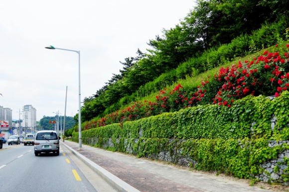 ◆ 덩굴 식물로 녹색 이미지 ‘업’ 녹색도시 구미 이미지 조성에 덩굴 식물도 한 몫하고 있다. 담벽에 담쟁이와 덩굴장미를 식재해 푸르름과 아름다움을 더했다. 구미시는 2006년부터 2013년 현재까지 담쟁이를 총 8.5km에 걸쳐 147천본, 덩굴장미는 4.3km에 18천본을 식재했다. 장소는 구미IC 입구 옹벽, 임오 고속도로변, 공단대로변 담장, 수출로변 담장, 도량산 밑 옹벽, 금오공고 뒤 옹벽 등이며, 담쟁이 식재로 회색 담벽을 푸른색으로 바꾸어 놓았다. 한편, 연도변 28km에는 사철나무, 광나무로 수벽을 조성해 깔끔한 도심경관을 조성했으며, 수출로~인동 9호광장 대로변에는 올해부터 사철나무, 측백나무를 이용한 띠 녹지 조성사업을 추진할 계획이다. 이외에도 원평그린웨이 숲길 조성, 자투리 공간 정비, 쌈지공원 조성 등으로 구미 곳곳에 나무와 꽃을 식재했다. 학교에는 학교숲을 조성해 학생들에게 정서함양을 도왔으며, 녹색 환경의 중요성을 각인시켰다. 구미시는 향후, 강바람숲길 등 4대 도시숲 조성과 지산 샛강 공원화 사업, 낙동강 둔치에 추진되는 일천만그루나무심기 운동 기념 구미숲 조성사업, 금오천과 구미천의 수변도시 조성 등 다양한 사업들을 계획하고 있다. 지구온난화 대비차원에서도 국내 최대의 산업도시 구미시는 전국 최고의 녹색환경 도시를 지향하고 있다.
