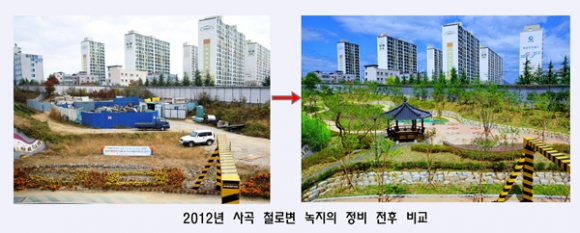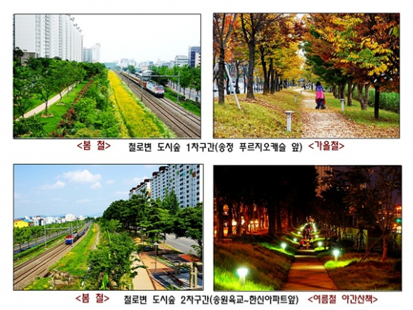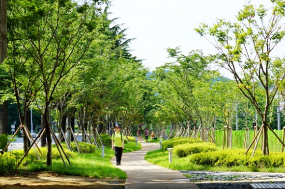 ◆ 명품 도시숲, 전국 평가 ‘우수’ 도시화 시대, 요즘 도시숲이 각광을 받고 있다. 구미 지역에는 인동, 원평, 철로변 도시숲 3곳으로 조성되어 있으며, 인동 도시숲이 대표적이다. 인동 도시숲은 당초 쓰레기 등으로 환경오염이 심각했으나, 2007년도부터 3년간 35억원을 투입해 왕복 3.1km에 이르는 걷고 싶은 명품 숲길을 조성했다. 올해는 3년간 17억원을 들여 ‘걷고 싶은 대왕참나무 가로수 숲길’을 조성할 계획이다. 인동 도시숲은 전국 최고의 도시숲으로 인정받아 ‘전국 녹색건전성평가’에서 우수상을 수상한 바 있다. 한편, 원평 도시숲은 4년간 27억원을 들여 황폐했던 고속도로변 2.1km를 멋지게 조성했다.또, 구미 도심을 관통하는 경부선 철로변 2.0km를 3년간 28억원을 투자해 산책로를 조성하는 등 시민들이 즐겨 찾는 힐링 공간으로 호응을 얻고 있다. 2단계 사업으로 2014년도 시민운동장 앞까지 총 길이 2.5km의 산책로가 추가 조성되면, 시민 휴식공간으로 많이 활용될 것으로 전망된다. 또한, 철로변 도시숲은 푸른 도시 조성사업으로 한국철로공사로부터 감사패를 3회 수상한 바 있다. 이외에도 구미IC앞 녹지조성, 구미대학 앞 녹지조성, 임오녹지 정비, 남통녹지 정비, 원호녹지, 광평녹지 등의 조성으로 도시숲들이 시민 건강을 톡톡히 책임지고 있다.