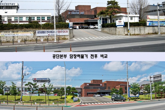 ◆ 담장 허물어 쉼터 조성 구미시 청사가 기존에 높이 2m 시멘트 옹벽담장으로 주변 경관을 헤치는 등 시민들로부터 심리적 거리감을 주었다. 이에, 구미시는 2007년도 담벽을 허물어 나무와 잔디를 심고, 해뜨락 공원을 조성해 시민들의 휴식공간으로 활용되고 있다. 이외에도 공단본부 옹벽, 매일신문사 옹벽, 구미세무서 옹벽, 구미세관, 금오공고, 금오초교, 한국폴리텍대학, 읍ㆍ면ㆍ동사무소 및 파출소, 신평초등학교 등 총 38건에 대해 사업비 51억여원을 투여해 쾌적한 환경을 조성했다.