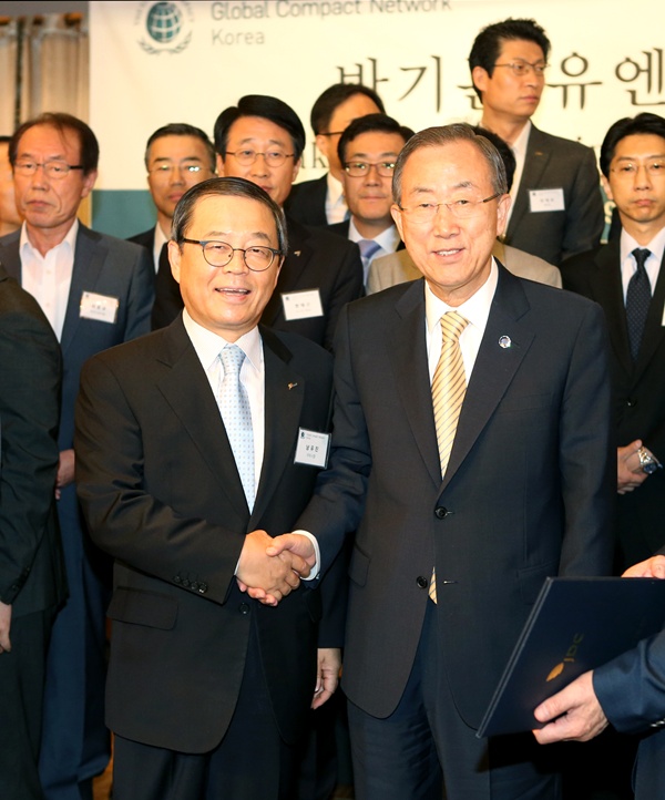남유진 구미시장은 8월 26일 서울 소공동 롯데호텔에서 열린 유엔글로벌콤팩트(UNGC)한국협회 주최 ‘반기문 유엔사무총장 초청 조찬간담회’에 참석했다. 간담회는 반기문 유엔사무총장의 8월 한국방문에 따라 유엔글로벌콤팩트 가입회원사 CEO와 정계, 학계 및 시민단체 대표 등 170여명이 참석한 가운데 이루어졌다. 반 사무총장은 “국제사회가 당면한 수많은 도전을 해결해 가기 위해서는 모든 행위주체들이 힘을 모아야 하고, 복잡 다기해진 범세계적 도전에 대응하기 위해서는 21세기형 파트너십을 구축해야 한다”며 기업인의 역할을 강조했다. 유엔글로벌콤팩트(UN Global Compact)는 뉴욕에 본부를 둔 세계 최대의 기업시민 이니셔티브이며, 1999년 코피 아난(kofi Annan) 전 유엔사무총장이 세계경제포럼에서 기업의 사회적 책임 이행을 통해 세계화로 인해 발생한 여러 문제를 해결하는데 적극 나서자는 취지로 발의한 후 2000년에 발족된 유엔 산하 전문기구로 한국회원사는 기업, 학계, 재단, NGO단체 등 244개가 있다. 남유진 구미시장은 “앞으로도 구미시는 UNGC의 10대원칙에 적극 동참해 구미시가 안전한 환경도시 및 세계적 명품도시로 우뚝 서는데 최선을 다하겠다”고 말했다. 구미시는 2008년에 우리나라 자치단체로서는 처음으로 가입해 인권ㆍ노동ㆍ환경ㆍ반부패 분야에서 UNGC 10대 원칙과 유엔 아젠다의 이행을 촉진시키는데 노력해 오고 있다. 또, 여성친화도시 조성 및 지구 온난화로 인한 기후변화와 환경문제에 대응하기 위해 탄소제로도시를 선언하고 일천만그루 나무심기운동, 구미낙동강 체육공원 조성, 세계최초 무선충전 전기버스운행 등 자연과 인간, 첨단산업이 공존하는 녹색미래도시 건설에 앞장서고 있다.