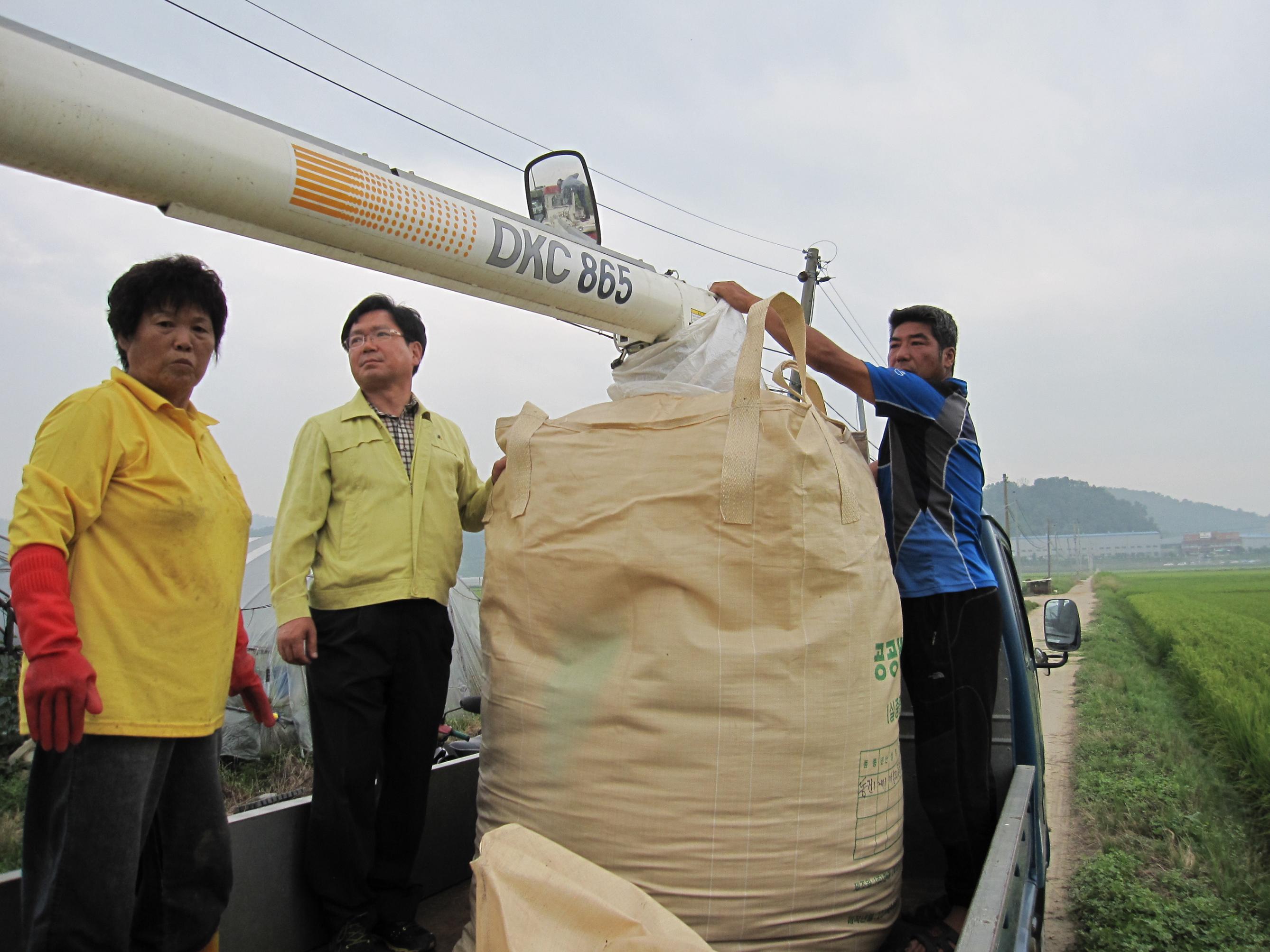 북산 최규달씨, 이문리 조필용씨 농가 벼 수확