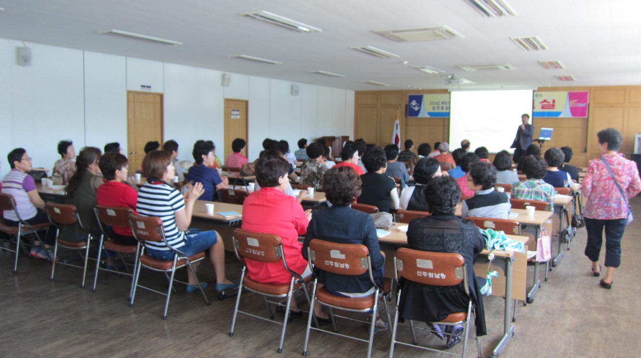 선주원남동(동장 최한주)은 9월 4일 동 주민센터 2층에서 노래교실 수강생 70명이 참석한 가운데 2013년 하반기 읍ㆍ면ㆍ동 맞춤형 교육 프로그램 노래교실 개강식을 개최했다. 노래교실은 평생교육원 주최, 선주원남동 주관으로 매주 수요일 2시간씩 김수일 강사의 지도아래 약 3개월에 걸쳐 진행될 예정이다. 풍물교실 이외에도 요가교실 80명, 풍물교실 20명, 원남새마을금고, 전통다도&예절교실 20명, 지혜나무 지역아동센터에서 9월부터 3개월간 실시된다. 맞춤형교육은 남녀노소 모든 시민들이 다양한 교육강좌를 접할 수 있는 기회를 제공함으로써 지역주민의 삶을 향상 시키고 학습을 통한 지역사회의 발전과 단합을 도모하고자 이루어지는 사회교육의 일환이다. 최한주 선주원남동장은 "이번 맞춤형 교육은 지역주민들이 건강한 정신과 육체를 통해 행복한 삶을 영위하는 작은 밑거름이 될 것으로 기대된다"며, "앞으로도 지속적인 주민복지 차원의 프로그램 개발에 최선을 다하겠다"고 말했다.