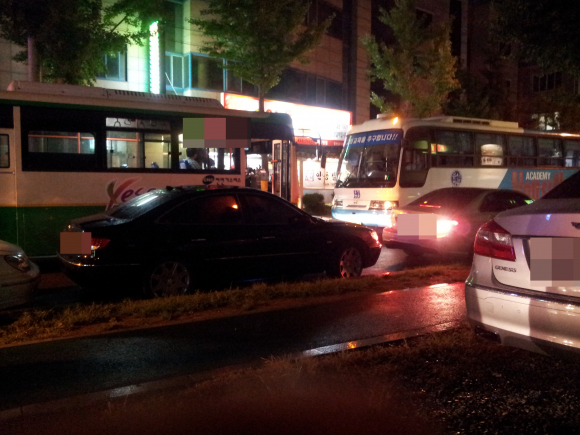 주차공간이 부족하다 보니 도로주변 갓길에는 여전히 불법 주ㆍ정차된 차량들로 몸살을 앓고 있다. 9월 6일 오후 8시경 송정동 13번도로에서 시내버스와○○ 관광버스가 정면으로 마주치는 상황으로 뒤에 따른 차량들이 연속으로 와 주행중 비켜 줄수 없는 웃지 못할 광경이 벌어졌다. 이는 지나던 사람들이 언뜻 보면 싸우는 장면 같지만, 불법 주차된 차량들로 인해 주행이 원활하지 못한 상황으로 13번 도로의 불법주차 심각성이 드러나, 시당국의 강력한 불법 주ㆍ정차 단속이 절실히 요구되고 있다. |