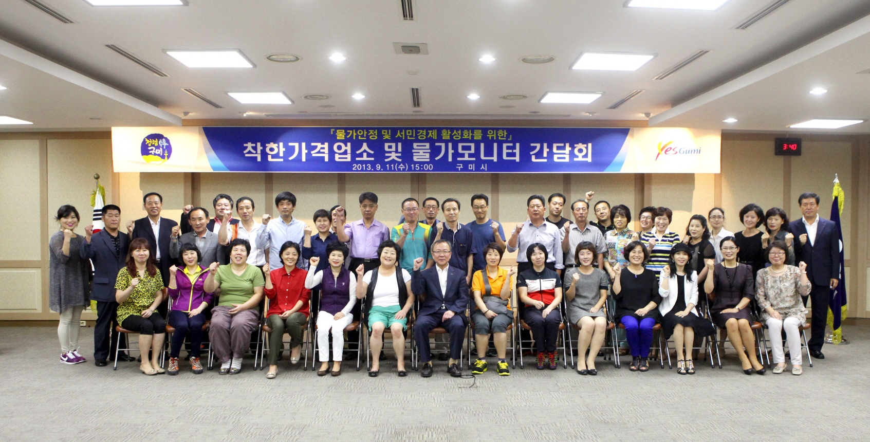 구미시(남유진 시장)는 9월11일 구미시청 3층 상황실에서 구미시 착한가격 업소 대표자 및 물가모니터 요원 40여명이 참석해 '착한가격업소 및 물가모니터 간담회'를 개최했다. 이날 간담회는 원가절감과 경영효율화를 통해 저렴한 가격으로 서비스를 제공하는 착한가격업소 대표자들과 안전행정부 주부물가 모니터, 도 물가모니터, 구미시 물가수호대 등 현장에서 활동하는 물가모니터들이 모여 2013년 추석 물가안정 관련 동영상 시청 한 후, 박세범 과학경제과장으로부터 추석물가 동향에 대한 설명을 듣고 물가 안정방안에 대한 토의를 진행했다. 특히, 두 명의 물가모니터 요원이 통계에 나타나지 않는 장바구니물가 동향에 대한 설명과 물가모니터를 하면서 느끼는 현장분위기 등을 전하는 사례 발표의 시간이 마련 되었다. 물가모니터 요원들과 착한가격업소 대표자들간의 격 없는 토의를 통해 구미시의 물가관리 정책이 한 단계 더 도약될 수 있는 계기가 될 것으로 기대 된다. 한편, 착한가격업소는 식품 원료 가격의 인상 등으로 어려움이 있기는 하지만 시민들이 부담 없이 찾아와 기쁜 마음으로 돌아갈 때 더 큰 기쁨을 느낄 수 있다면서 이런 기회를 통해 착한가격업소로서의 자긍심을 가지고 착한가게의 착한 바이러스가 구미 전 지역에 퍼질 수 있게 더욱 노력하겠다고 다짐했다. 윤정길 부시장은 "신선식품 등 원자재 가격이 오르는 상황에서도 낮은 가격을 유지하며 시민들에게 행복한 서비스를 제공하는 착한 가격업소와 꾸준한 모니터링을 통해 물가안정에 기여하는 물가모니터들에게 감사하다"며, 서민경제와 물가 안정을 위해 최선을 다 해 줄것"을 당부했다.