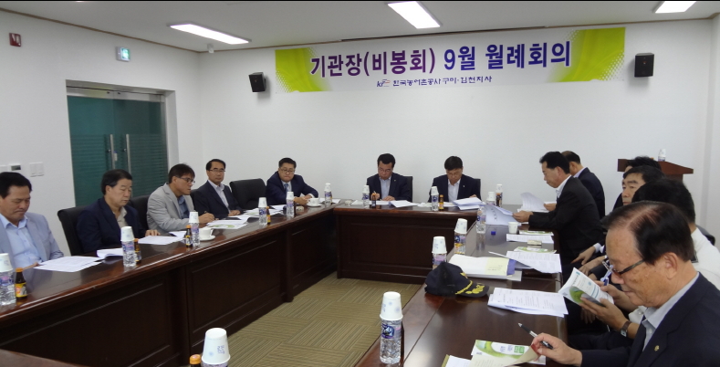 선산출장소(소장 황종철)는 기관단체장 모임인 비봉회 월례회의를 9월 11일 한국농어촌공사 구미ㆍ김천지사에서 회원 14명이 참석해 개최되었다. 선산지역민의 최대 관심사업인 교리구획정리사업, 구포 생곡간 우회도로 건설사업, 도시가스 배관망 구축사업, 한우자가소비 지원사업, 소나무 재선충병 신고, 동물 등록제 시행, 전통시장 이용하기, 구미시와 대만 쭝리시 문화교류 공연등 시정을 홍보했다. 기관단체장들은 추석을 맞아 불우이웃돕기 성금 30만원을 선산읍 소재, 성심요양원(원장 이춘자)에 기탁하기로 결정했다. 황종철 소장은 "송정동에서 고아읍 문성리로 최근 이전한 한국농어촌공사 구미ㆍ김천지사의 신청사 준공을 축하한다"며, 공공정보를 개방 공유하고 국민 맞춤형 서비스를 제공한다는 취지의 정부 3.0에 대한 설명을 하고 기관단체간 소통과 협력으로 지역민을 위해 최선의 노력을 다하겠다"고 말했다. |