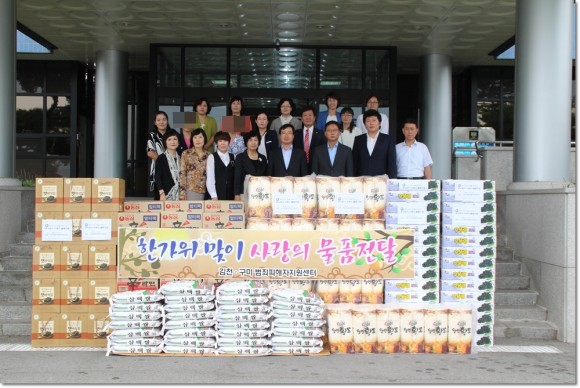 대구지방검찰청 김천지청과 김천·구미범죄피해자지원센터는 9월 12일 추석을 앞두고 범죄피해자들에게 위로와 희망을 주고 사랑을 나누기 위해 범죄피해자 가정 30가구를 선정해 물품을 전달하는 행사를 가졌다. 이날 새로 부임한 김경석 대구지검 김천지청장을 비롯, 검찰청 관계자, 변태희 이사장과 범죄피해자지원센터 상임이사, 직원, 자원봉사자 등이 참석한 가운데 김천지청 전정에서 전달식을 갖고 이후 봉사자들이 각 가정으로 전달한다. 한가정에 쌀10kg, 라면, 포도, 김, 화장지 등의 물품을 전달하며 또한 그동안 물품지원을 넘어 즐겁고 풍성한 한가위가 될 수 있도록 마음까지 담아 행복을 선물하기 위해 노력해 왔다. 변태희 이사장은 "민족명절 한가위를 맞아 피해자 가정에 좋은 일들만 가득하길 바란다"며, 희망을 갖고 밝게 웃을 수 있도록 센터가 늘 곁에서 힘이 되어 주고 지속적인 지원이 이뤄질 수 있도록 노력할 것"이라고 말했다. 피해자 지원센터는 피해자들에 대한 상담지원 및 위기개입, 의료ㆍ경제 지원 및 법률지원, 수사기관 및 법정동행, 범죄이전의 평온한 일상으로의 복귀 및 자조모임 등을 통해 여러 방면에서 피해자를 돕기 위해 노력하고 있다.