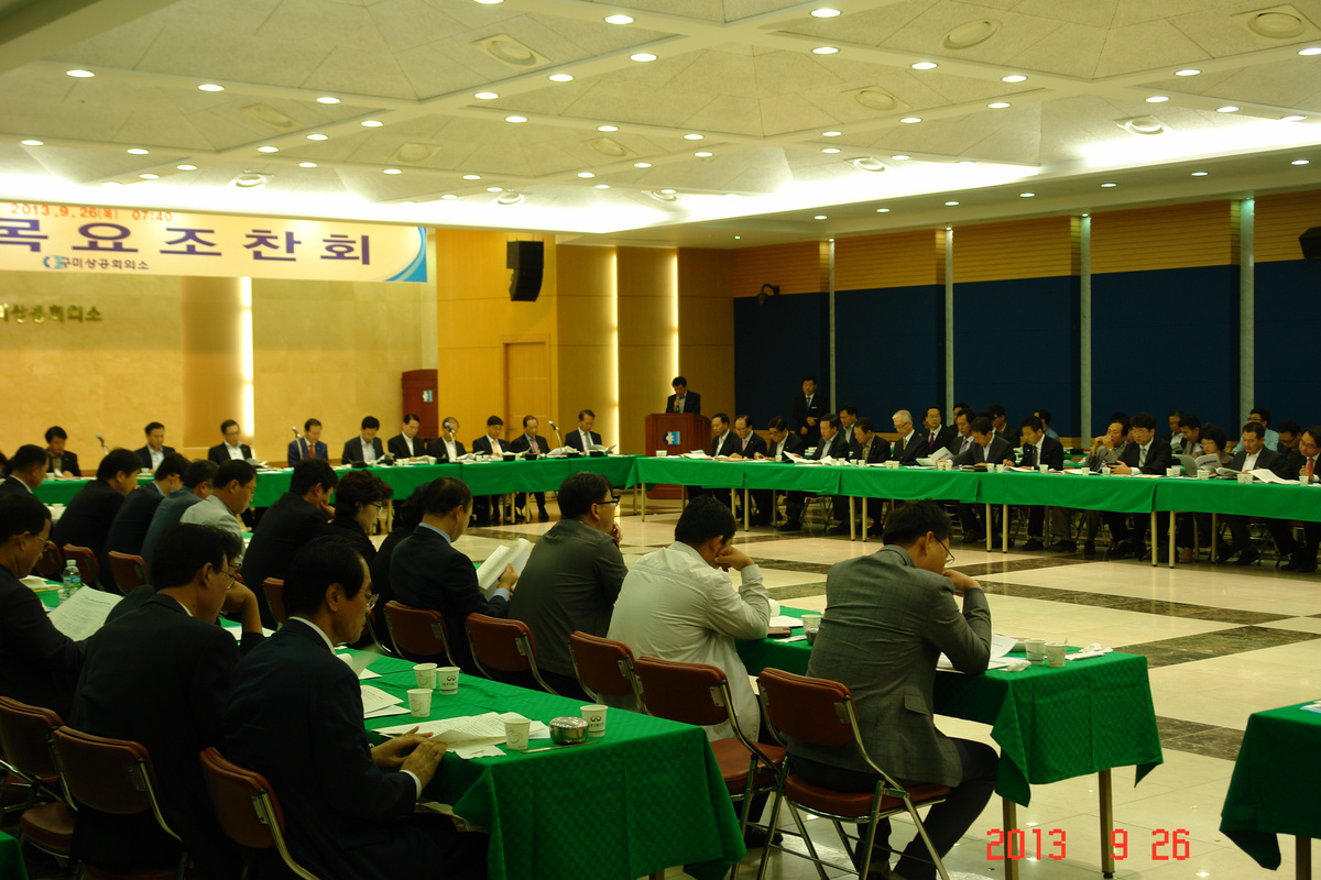 구미상공회의소(회장 김용창)는 9월 26일 2층 대강당에서 김용창 회장, 남유진 구미시장, 권오덕 구미경찰서장, 김일현 구미세무서장, 이구백 구미소방서장, 안경진 고용노동부 구미지청장을 비롯한 기관단체장, 회원사 대표 및 임직원 등 160여명이 참석해 9월 목요조찬회를 개최했다. 이날 조찬회는 구미시정 설명, 개회, 국민의례, 신임기관단체장 소개, 김용창 회장인사, 남유진 구미시장 인사, 지역경제동향 보고, 건의 및 답변, 기타사항, 폐회 순으로 진행되었다. 김용창 회장은 "구미경제는 그동안 잠잠한 듯했으나 최근 LG디스플레이의 대규모 투자가 이어져 큰 기대감을 표한다"며, "지난해 휴브글로벌 불산사고가 발생한지 1주년을 맞아 기업인들은 더욱 안전한 기업환경 조성에 촉각을 곤두 세우며 스스로 준비하는 자세를 가져야 한다"고 당부했다. 주요 건의사항으로는 깅감단지ㆍ코오롱협업단지 일대 상습침수 해결을 위한 근본적 대책마련과 구미시 중소기업시설자금 융자지원 한도 상향, 기술보증기금의 벤처기업 보증서 발급에 대한 보증료 인하, 관공서 및 공공기관 입찰시 지역 기업에 우선 기회 부여 건의 등 기업애로사항 5건이 건의 되었다. 기타사항으로 구미소방서의 동절기 대비 공장화재 예방 당부사항 전달과 안전보건공단의 스마트폰 애플리케이션 위기탈출 앱 시리즈 안내가 있었다.