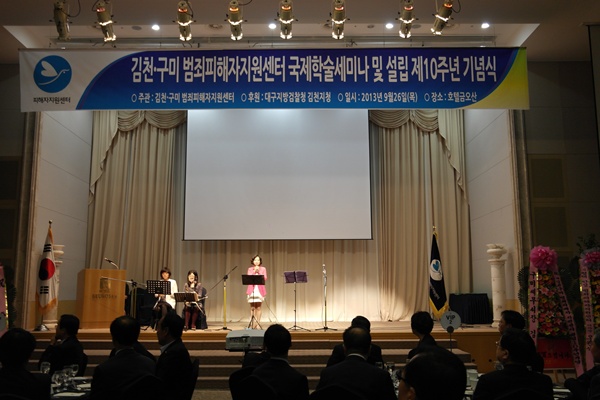 김천ㆍ구미 범죄피해자지원센터(이사장 변태희)는 9월 26일 금오산호텔에서 '김천ㆍ구미 범죄피해자지원센터 설립 10주년 기념식 및 학술 세미나'를 개최했다. 이날 세미나는 남유진 구미시장, 박보생 김천시장, 김경석 대구지방검찰청김천지청장, 변태희 김천ㆍ구미 범죄피해자지원센터 이사장, 김갑식 전국범죄피해자지원연합회장, 윤창욱ㆍ이태식ㆍ변우정 도의원, 임춘구 구미시의회 의장, 배낙호 김천시의회 의장등 기관단체 관계자 200여명이 참석했다. 1부 행사에는 일본 이바라키 피해자센터 토미타노부호 이사장의 일본에서의 범죄피해자등을 위한 시책과 최근의 동향과 이후의 과제라는 주제발표와 조균석 이화여대법학전문대학원 교수의 '회복적 사법제도의 이해'라는 발표가 있었다. 2부 행사에는 의정부지검 고양지청 '파랑새봉사단' 의 축하공연을 시작으로 또한 유공자 포창을 비롯한 센터모범생 20명에 대한 장학증서 수여식이 있었다. 포에버자조모임의 학생은 어려움을 이겨내고 당당히 자신을 위해 나아가는 희망의 글을 낭독, 참석자들로부터 박수갈채를 받았으며, 변태희 이사장의 10년 활동자료 영상발표후 김경석 지청장을 비롯, 내외빈 축사가 이어졌다. 변태희 이사장은 "이번 행사에 참석해주신 모든분들께 감사하다"며, "10주년이라는 튼튼한 뿌리를 바탕으로 피해자들을 진정성을 가지고 돌보고 최선을 다하겠다"고 말했다. 남유진 시장은 "피해자를 위한 체계적인 사회지원시스템 마련에 획기적인 계기를 마련해 온 범죄피해자지원센터가 더욱 성장ㆍ발전하기를 바란다"고 말했다. 김경석 김천지청장은 "전국 최초로 김천ㆍ구미지역에 범죄피해자지원센터가 설립된 것은 소외된 사람들에게 큰 희망이 되었다"며, "범죄로 인한 피해자의 아픔을 보듬어주고 그들이 다시 사회의 일원으로 우뚝 설 수 있도록 검찰에서도 많은 관심과 지원을 아끼지 않겠다"고 말했다. 한편, 김천ㆍ구미 범죄피해자지원센터는 2003년 전국 최초로 설립, 범죄피해자들의 인권보호와 학자금, 의료비, 생활지원금및 각종 범죄 피해로 부터 고통 받는 이들을 위해 지속적이고 다각적인 지원으로 피해자들이 아픔을 딛고 일어나서 희망찬 삶을 살아갈 수 있도록 노력하고 있다.