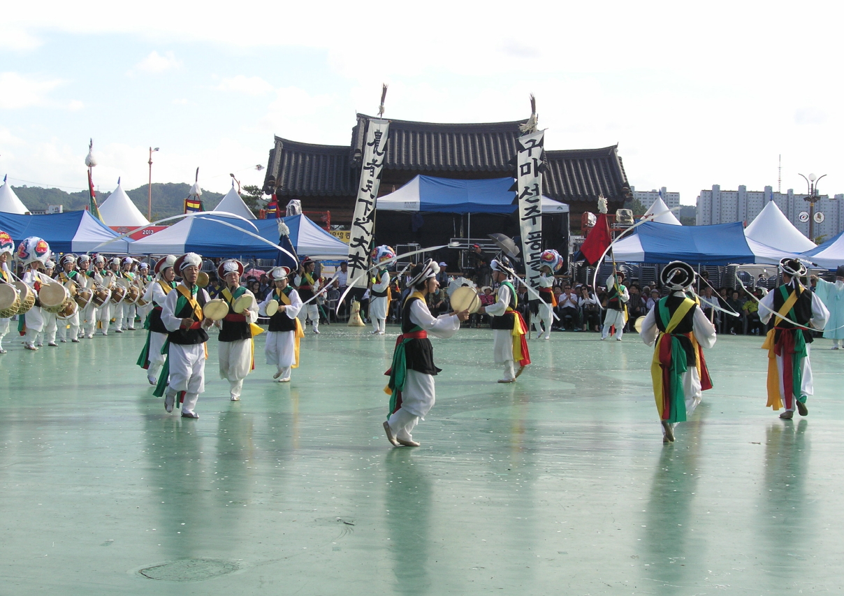 제21회 경상북도 풍물 대축제에서 구미시 대표팀 3팀이 참가, 장원과 차하의 수상의 영예를 안았다. 경상북도문화원연합회 주최, 안동문화원 주관, 경상북도 풍물 대축제에는 경북도내 23개 시ㆍ군에서 26개팀이 참가해 지난 10월 1일 안동시 소재 안동 탈춤공원에서 열렸다. 이번 대회는 구미시 일반부 대표로 출전한 선주풍물단(단장 권금자) 단원 37명과 청소년부 대표로 출전한 오상고교 다사리풍물단(교장 엄영태) 단원 40명이 각각 최고의 상인 장원을 수상, 산동초교 베틀 풍물단(교장 남재국) 단원 40명이 차하 수상의 영예를 차지했으며, 구미 풍물의 우수성을 널리 떨쳤다. 선주풍물단, 오상고등학교 다사리 풍물단, 산동초등학교 배틀 풍물단은 모두 진굿(군사굿) 형태의 힘차고 빠른 가락으로 구성되어 북가락이 웅장하고 장쾌했다. 소고놀음이 아주 발달되어 예술적 아름다움을 느끼게 하는 무을풍물을 전수ㆍ전승 보전 하고 있다. 이번 풍물 대축제를 통해 우리 고유의 민속놀이인 풍물을 활성화하고 전통문화의 전승보존으로 문화도시 구미로 발전하길 기대해 본다. 한편 선주풍물단은 오는 10월 19일 서울 남산 한옥마을에서 열리는 2013 전국 농어업인 두레 풍물경연대회에 경상북도 대표로 출전하는 영예도 차지했다. |