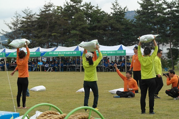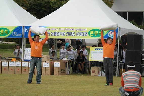 NH농협은행 구미시지부(지부장 김기해)와 관내 농ㆍ축협은 10월 5일 구미전자정보기술원에서 ‘2013 농협 임직원 한마음 상생대회’를 개최했다. 이날 행사는 ‘소통ㆍ상생ㆍ협력으로! 농업인 행복시대 만들기’ 일환으로 마련 되었으며, 남유진 구미시장, 김태환 국회의원, 임춘구 구미시의회 의장 및 관내 조합장 등 800여명이 참여해 상호간의 화합된 모습을 보여주었다. 행사는 개회식, 감사패 전달, 결의문 채택, 풍선터뜨리기, 단체축구, 다리묶고 달리기, 이어달리기, 쌀가마니들기, OX 퀴즈 및 화합 대회 등으로 진행 되었다. 김기해 지부장은 대회사에서 “이번 대회를 위해 바쁜 일정에도 불구하고 노고를 아끼지 않은 관내 임직원들에게 감사한다”며, “오늘 하루만큼은 즐거운 축제의 장이 되길 바란다”고 말했다. 또, 남유진 구미시장은 “상생 대회를 통해 화합ㆍ단결해 시민 모두가 신뢰 할 수 있는 농ㆍ 축협이 되길 바라며, 농업 발전을 위해 힘써 줄 것”을 당부했다.