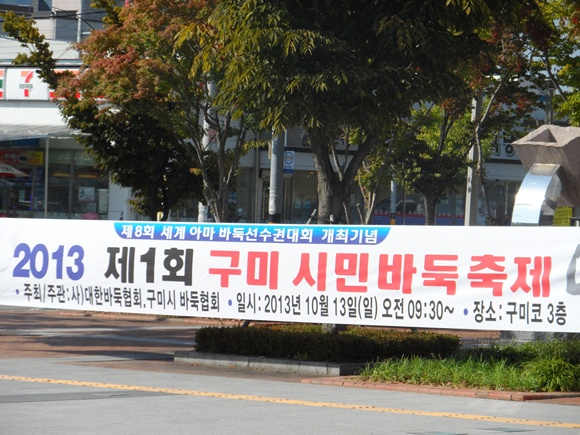 ‘제1회 구미시민 바둑대회’가 10월 13일 구미코에서 열렸다. (사)대한바둑협회(회장 허동수) 주최, 구미시바둑협회(회장 정무영) 주관으로 열린 이날 대회는 제8회 국무총리배 세계아마바둑 선수권대회 개최를 기념으로 학생부, 일반부로 나뉘어 진행되었다. 이날 행사에는 남유진 구미시장, 심학봉 국회의원, 임춘구 구미시의회 의장, 서대원 아시아바둑연맹회장, 유창혁 프로 9단 등 많은 시민들이 참석해 바둑에 대한 높은 관심도를 보였다. 대회 참가자는 성인부 16팀 80명과 학생부 11개 부문 160여명이 출전했다. 대회 결과, 성인부 4조 안상진, 권두창, 송기환, 문장주, 함승호씨가 우승을 차지하는 영광을 안았다. 또, 학생부는 김민찬(유치부), 백준우(봉곡초 1), 이창동(봉곡초 2), 손민기(형일초 3), 신수민(형곡초 4), 성민현(형남초 6), 박이한(선주초 2), 서진영(금오초 3), 최태웅(봉곡초 6), 김정우(형곡초 4), 박동현(옥계중 2)이 각각 우승을 차지했다. 정무영 회장은 “구미에서 제8회 국무총리배 세계아마바둑 선수권대회를 개최하게 되어 기쁘게 생각하며, 대한민국 선수들이 실력을 마음껏 발휘해 세계1위를 되찾을 수 있기를 기대한다”고 말했다. 또, “제1회 구미시민 바둑대회를 계기로 바둑인구 저변확대는 물론 바둑 활성화에도 크게 기여할 것으로 전망된다”며, “대회 참가자들은 바둑을 마음껏 두면서 스트레스 해소는 물론 동호인들간의 친목을 도모하는 좋은 시간이 되기를 바란다”고 말했다.