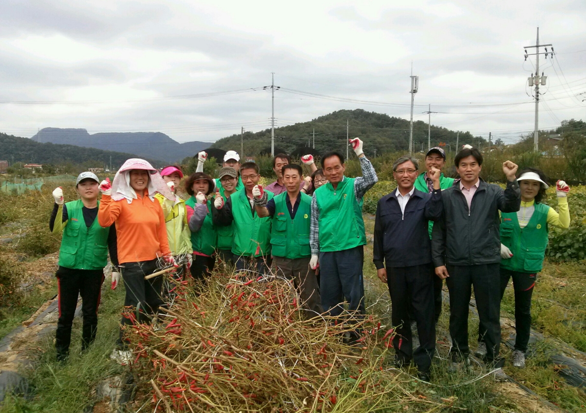 장천면(면장 백인엽)새마을남ㆍ녀지도자협의회(회장 김구연, 김우계)는 10월 15일 도ㆍ농 자매결연도시인 공단1동 새마을 남ㆍ녀지도자 및 직원 20여명이 참석한 가운데 농촌 일손돕기를 실시했다. 이날, 권성호 공단1동 새마을지도자협의회장, 김구현 장천면 새마을지도자협의회장, 배정미 새마을과장, 정석광 공단1동장 등 관계자들이 참여해 메론 덤불걷기 작업, 고춧대와 고추 지지대 뽑기, 비닐 걷어내기 등 많은 일손 돕기를 실시했다. 백인엽 장천면장은 "농번기 농촌 일손 부족으로 어려움을 겪고 있는 농가에 도움을 주신 공단1동 새마을 단체와 직원분들께 감사하다"며, 도ㆍ농상생의 의미를 되새겨보는 뜻깊은 시간이되고 농촌 일손돕기 활동과 농산물 직거래를 통한 도ㆍ농 자매결연 활성화에 앞장 설 것"이라고 말했다. 권성호 공단1동새마을지도자협의회장은 " 작은 손길이나마 최선을 다해 일손 돕기에 임하겠다"고 말했다. 김구연 장천새마을지도자협의회장은 "농번기라 바쁘신중에도 일손 부족 농가를 위해 도움을 주신 많은 분들께 감사하다"고 말했다 배정미 새마을과장은 "정성어린 음식준비를 해주신 장천면 부녀회에 노고가 많다"며, "앞으로도 더욱 활발한 상호 교류가 되어 상생하는 결연이 되길 바란다"고 말했다. 정석광 공단1동장은 "우리의 작은 정성과 노력이 농촌의 일손을 도울 수 있어 기쁘다"고 말했다.