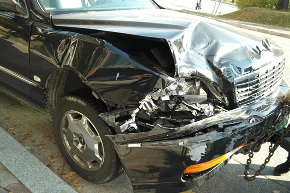 직진하는 프라이드와 좌회전하는 에쿠스 승용차가 추돌
