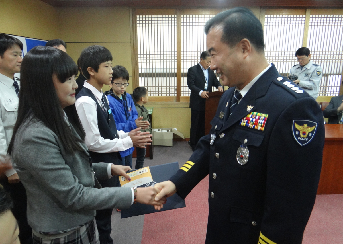 이번 간담회에서는 의무 위반 없는 구미경찰을 위한 경찰관 자녀 표어 공모전, 음주운전 우리 아빠, 잠 못드는 우리 엄마, 를 제출해 최우수상으로 입상한 정보과 경사 노상영의 子 노동욱(10세, 인평초교 3학년) 등 경찰관 자녀 5명에 대한 상장 수여식을 가졌다.