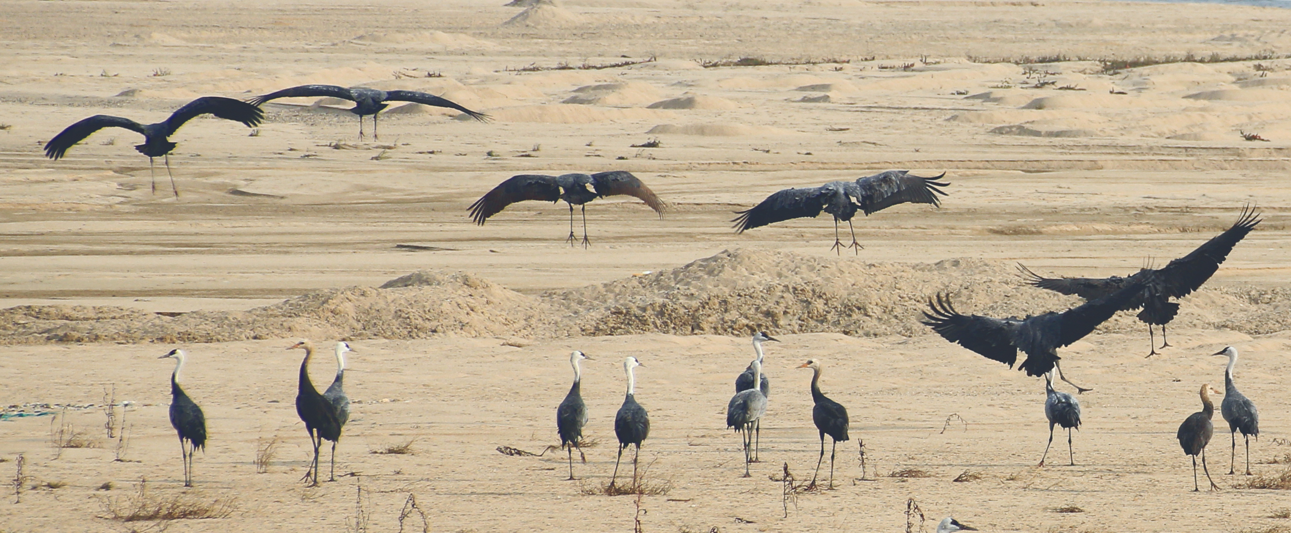 전날 날아온 흑두루미들은 하룻밤을 쉬고 다음 날 아침 낙동강을 떠나 일부는 전남 순천만으로 일부는 일본 이즈미로 날아가 겨울을 보낸다.