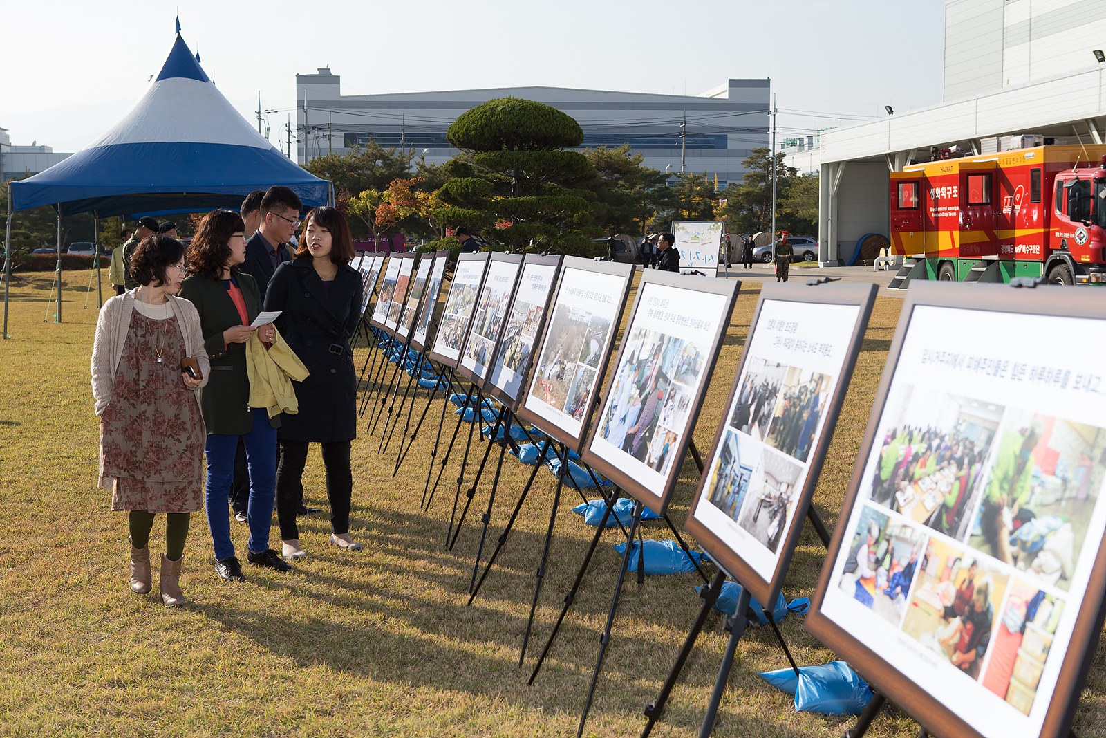 훈련장 주위에는 지난해 사상 초유의 사고였던 (주)휴브글로벌 불산가스 누출 사고 발생 1주년을 맞아 불산사고의 발생과 복원과정, 건강한 환경녹색도시로 거듭나고 있는 구미의 모습을 담은 사진전과 화학사고 방제장비 전시도 겸해 훈련에 내실을 더했다.