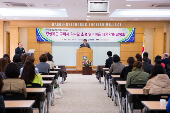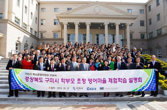 구미시학교운영위원장연합회(회장 양진오)는 구미시 학부모들이 실전 영어체험의 기회를 제공하기 위해 '2013년 10월 31일 대구경북영어마을에서 영어체험학습 설명회 및 체험학습'을 실시했다.