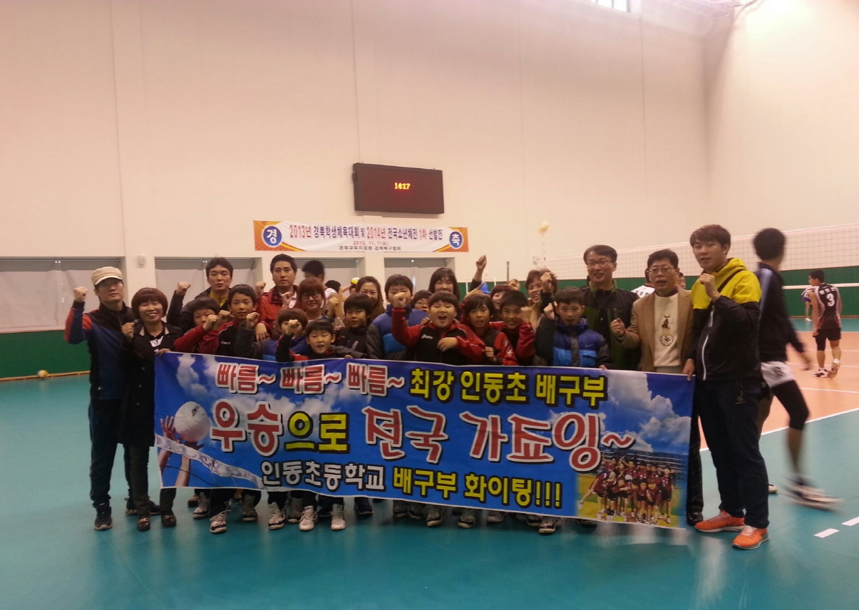 인동 초등학교(교장 오성환)배구부는 경상북도교육청, 경북 배구협회 주관ㆍ주최, 문경 국군 체육부대에서 11월 1일 제50회 경북학생체육대회 겸 2014년 전국소년체전 경북 대표 1차 선발평가전에서 우승하는 쾌거를 이루었다.