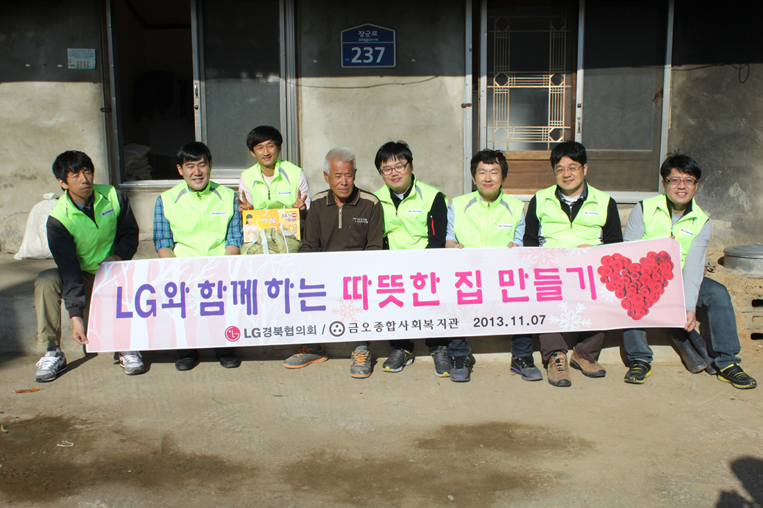 LG경북협의회(회장 이웅범)는 11월 7일 구미시 장천면 소재, 독거노인가정을 방문해 'LG 와 함께하는 따뜻한 집 만들기' 활동을 전개했다.