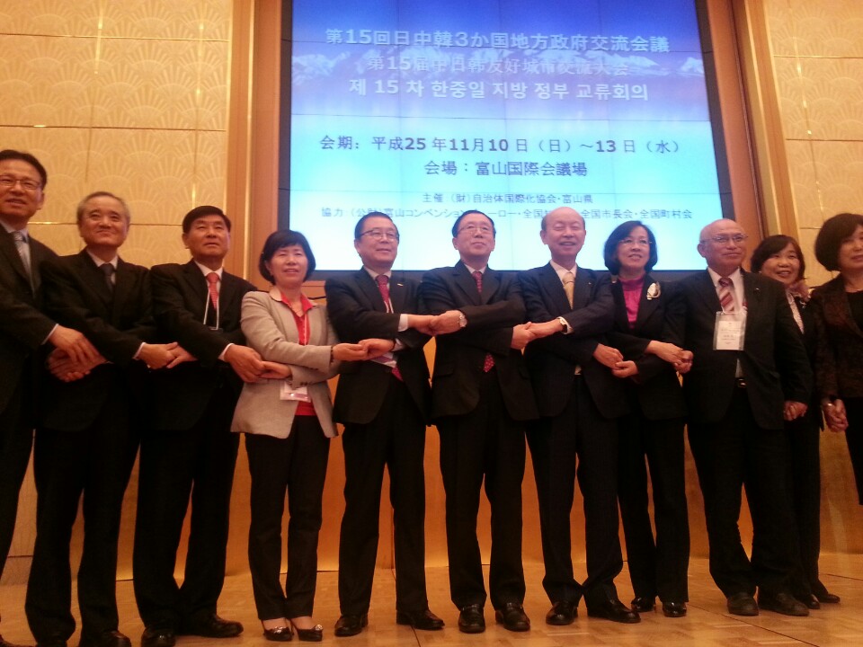 남유진 구미시장은 한ㆍ중ㆍ일 3개국 지방정부 관계자 400여명이 참석한 가운데 11월 10일~12일까지 일본 도야마현 도야마시에서 개최되는 '제15회 한ㆍ중ㆍ일 지방정부 교류회의에 참석해 2014년 제16회 한ㆍ중ㆍ일 지방정부교류회의'구미 개최에 대해 환영의 인사말을 전했다.