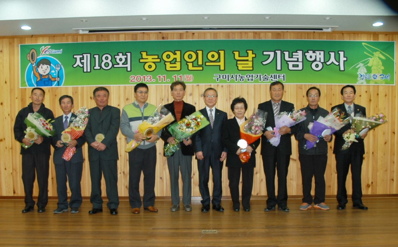 구미시(시장 남유진)는 11월 11일 농업인의 날을 맞아 우리 먹거리에 대한 소중함을 일깨우고 농업에 대한 희망과 자신감을 대내외에 널리 알리고자 농업기술센터 회의실에서 제18회 농업인의 날 기념행사를 가졌다.
