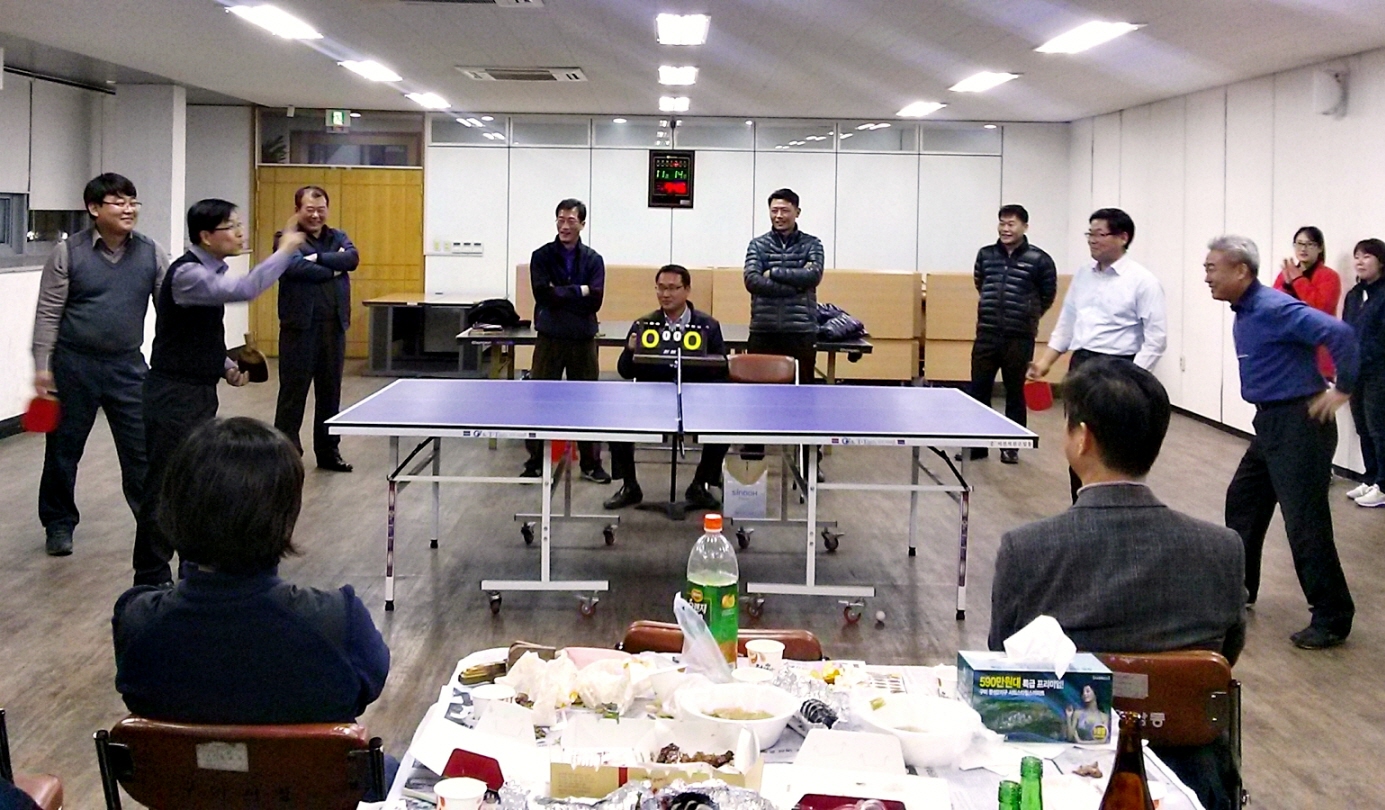 이번 탁구대회는 11월 Hot-Thursday를 이웃동과 함께 하고자 하는 이대창 도량동장의 제의에 최한주(선주원남동) 동장이 적극적으로 호응해 성사되었다.