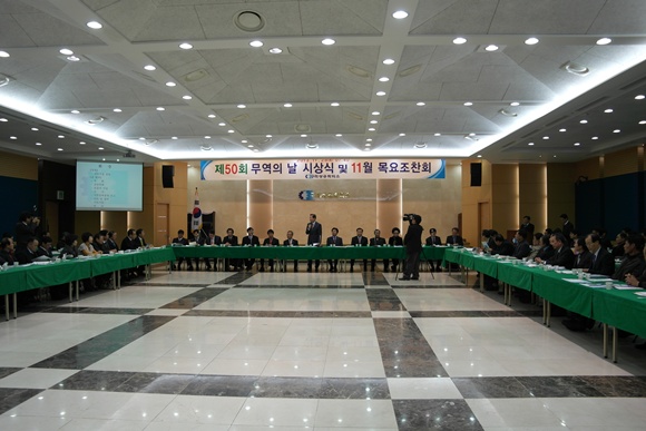 구미상공회의소(회장 김용창)는 11월 28일 2층 대강당에서 '제50회 무역의날 시상식및 11월 목요 조찬회'를 개최했다.