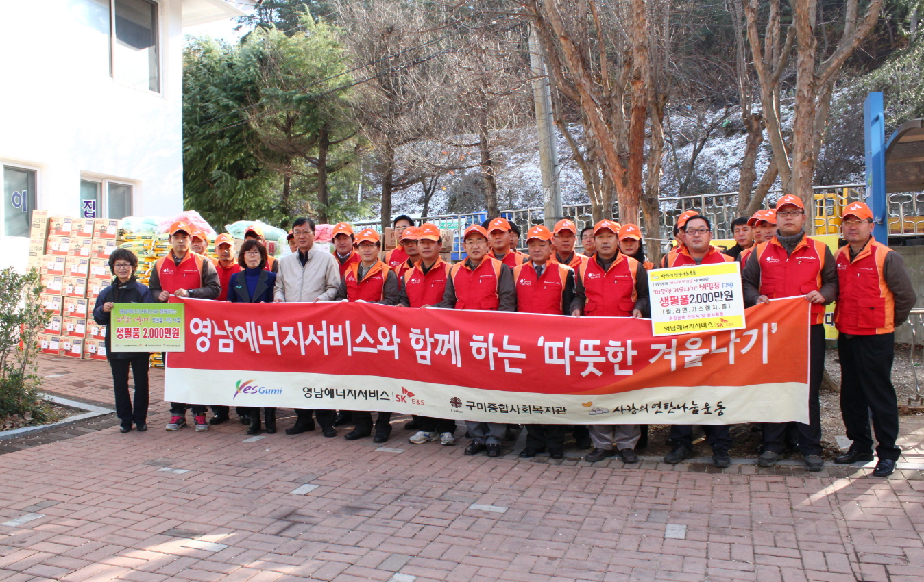 영남에너지서비스(대표 조성대)는 11월 28일 구미시 대구경북연탄 나눔본부, 구미 사회복지관과 연계해 40여 명의 구성원이 참석한 가운데 도시가스 공급권역인 황상동지역에서 어려운 이웃들을 찾아 따뜻한 겨울나기 후원행사를 실시했다.