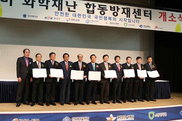 이날 행사는 부처 칸막이를 없앤 정부 3.0 최초의 열린 협업 조직인 ‘화학 재난 합동 방재센터’ 출범을 기념하기 위해 개최했다.