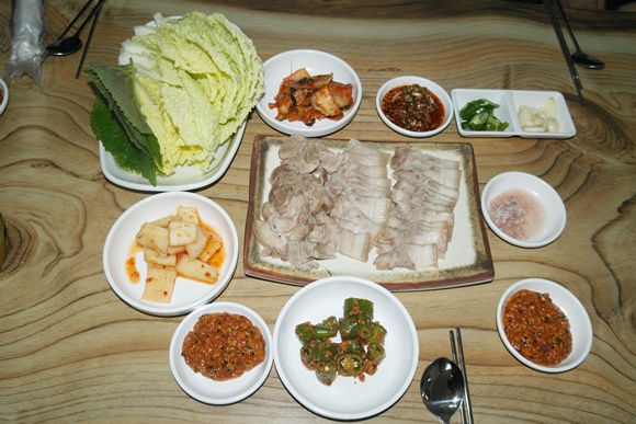 구수한 시골된장에 유기농 야채, 비린내 없고 돼지 특유의 잡내음 없는 수육 또한 일품이다.