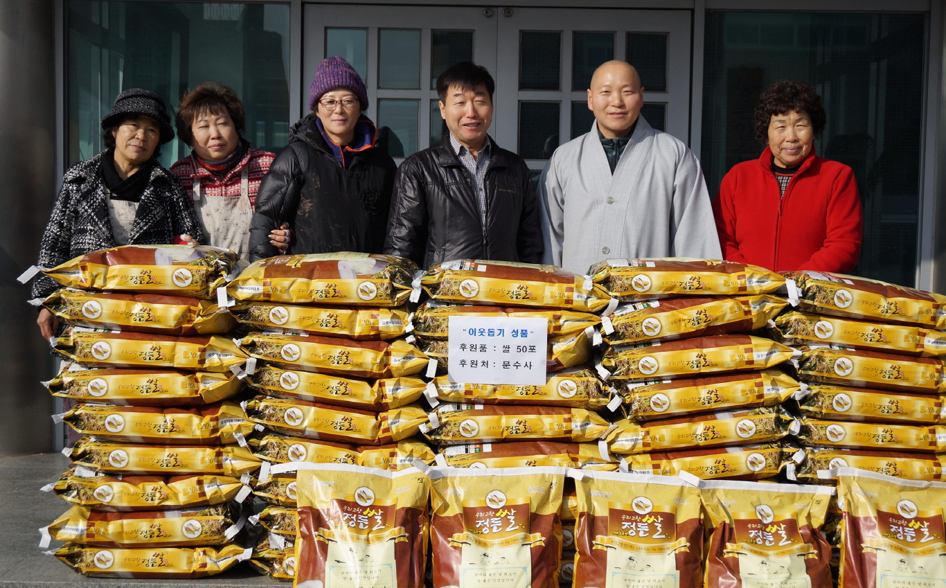 이번 성품 전달은 연말연시를 맞이해 따뜻한 온정을 나누고자 문수사에서 준비한 것으로 이날 기탁한 성품은 관내 어려운 이웃들에게 골고루 전달되었다.