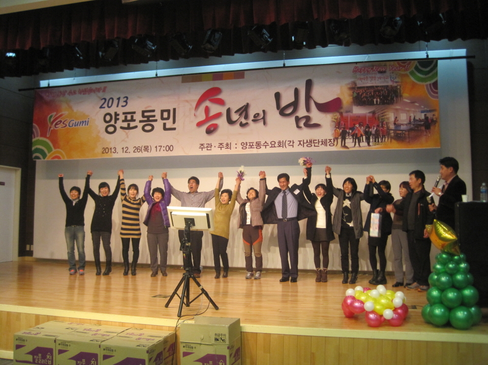 또, 지역민의 화합과 발전을 위해 노력 봉사한 5명에게 동민 감사패 전달 및 단체 활성화와 회원 상호 간 친목도모에 공이 많은 자생단체장 3명에게 국회의원 표창장을 수여했다. 장도익 양포동장은 "동민 모두가 2013년 한 해 동안 동 발전의 밑거름이 되어 진심으로 감사하다"며, "다가오는 갑오년 말띠 해는 구미시와 동민 모두 도약의 해가 되기를 기원한다"고 말했다.